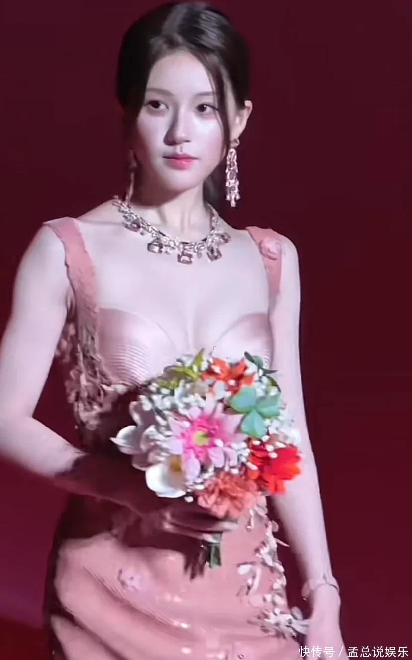 内场换黑丝绒抹胸裙,低盘发配流苏耳饰,C位领奖气场全开。她外场粉裙选款太绝,柔缎面料贴身穿不紧绷,走动时裙摆晃起来灵动俏皮,高开衩露腿分寸刚好,甜而不腻,珠宝简约点缀脖颈手腕,和裙子搭得刚刚好,奢华不张扬。内场黑裙走的极简风,没多余装饰,全靠面料的高级感,低盘发去掉甜腻,看着大气沉稳,淡定劲儿和造型超配。